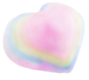 『レインボーわたあめ』をハート型にしたキュートな『ハートレインボーわたあめ』(800円)は