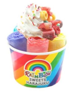 原宿の新名物となりそうな『レインボーロールアイス』(950円)は、