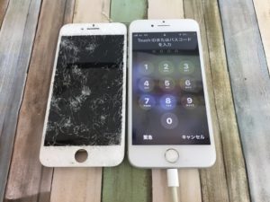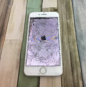 車で踏んでしまったらしく画面全体がバキバキの状態で